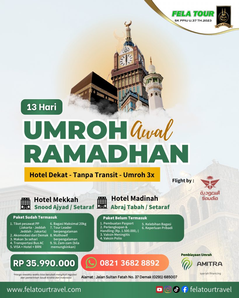 Umrah Ramadan 2026 | Paket Umrah Awal Ramadan – Fela Tour (Demak)